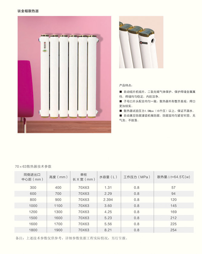 本企業(yè)主要 生產(chǎn)鋼制換熱器和散熱器,衛(wèi)浴片,鋼鋁復(fù)合等六大系列三十多個規(guī)格的產(chǎn)品,贏得廣大用戶的普遍信賴。